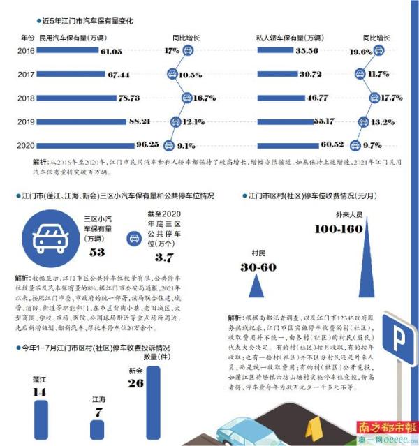 解析:数据显示,江门市区公共停车位数量有限,公共停车位数量不及汽车保有量的8%。据江门市公安局通报,2021年以来,按照江门市委、市政府的统一部署,该局联合住建、城管、消防、街道等职能部门,在市区背街小巷、老旧城区、大型商圈、学校、市场、医院、公园球场附近等重点场所周边,先后新增施划、翻新汽车、摩托车停车位20万余个。