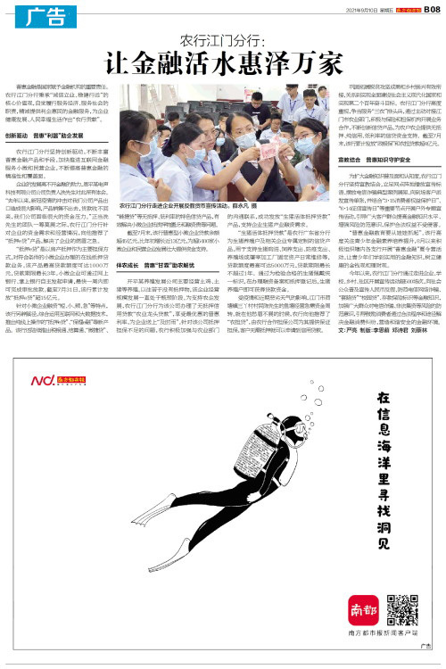 普惠金融是国家赋予金融机构的重要责任。农行江门分行秉承“诚信立业、稳健行远”的核心价值观,自觉履行服务经济、服务社会的职责,精诚提供利企惠民的金融服务,为企业健康发展、人民幸福生活作出“农行贡献”