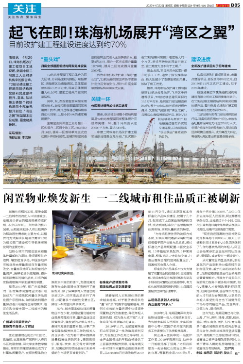 南都讯 4月20日,珠海机场改扩建工程项目工地现场,随着中建二局施工人员对讲机传来的报告声,T2航站楼主楼工程屋面钢结构网架顺利完成整体提升。至此,航站楼主楼整个钢结构屋面全部单元提升到位,“湾区