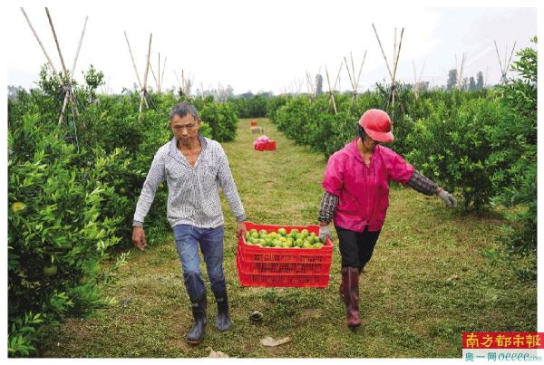 4. 工人们正在搬运柑果。