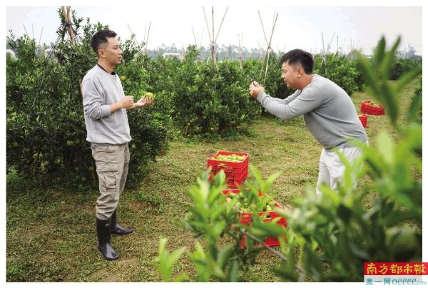40亩柑田,年产20多万斤新会柑,如何开辟新的销路?梁伟钊选择了短视频这条路。2019年,梁伟钊开始和表弟一起拍摄短视频,表弟当导演,他当演员。
