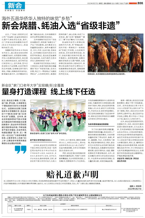 近日,新会区沙堆镇、三江镇、崖门镇、罗坑镇、大泽镇等五个镇陆续举行老年大学挂牌仪式。这是新会区第三批镇级老年大学揭牌办学,至此该区11个镇(街)实现“家门口老年大学”全覆盖。近年来,新会区积极探索