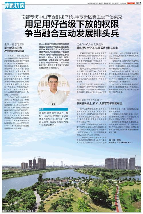 在中山建设广东省珠江口东西两岸融合互动发展改革创新实验区的新格局中,翠亨新区作为“东承”桥头堡被赋予重任。“只要是有利于新区突破瓶颈、有利于高质量发展的,都大胆地闯、大胆地试、大胆地向上争取,坚决