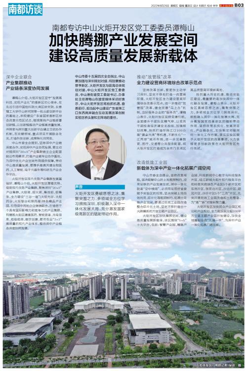 中山市委十五届四次全会指出,中山要加强与深圳规划对接,特别要推动翠亨新区、火炬开发区与前海总体规划对接。中山火炬开发区党工委委员,中山港街道党工委副书记、办事处主任谭梅山在接受媒体采访时表示,中山