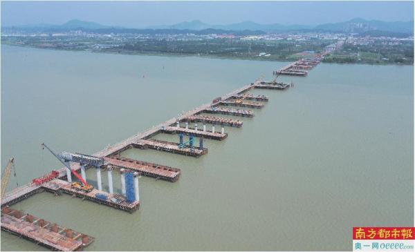 1. 银洲湖高速公路预计2024年5月建成。图为项目控制性工程之一——潭江特大桥。 通讯员 黎明 摄