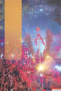 陈山香火龙。 欧蕊荣 摄 夏日有水龙(龙舟竞渡),秋季有旱龙(火龙、彩龙、金龙等舞龙活动)。龙,一直是鹤山人心中的精神图腾。鹤山市雅瑶镇的陈山香火龙有着750多年历史,
