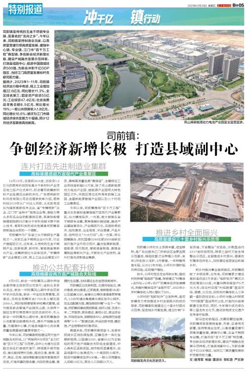 司前镇是传统的五金不锈钢专业镇,是著名的“龙舟之乡”。今年以来,司前镇坚持制造业当家,以高质量党建引领高质量发展,建强中心镇、专业镇、江门市“百千万工程”典型镇,争创新会经济新增长极,建设产城融合