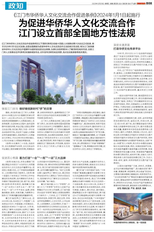为促进华侨华人文化交流合作 江门设立首部全国地方性法规