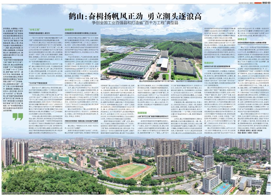 岁月更迭,大潮再起。11月6日,全省推进“百县千镇万村高质量发展工程”促进城乡区域协调发展现场会在茂名召开。会上公布了省“百千万工程”首批22个典型县名单,鹤山上榜,并成为全省9个创先类典型县之一