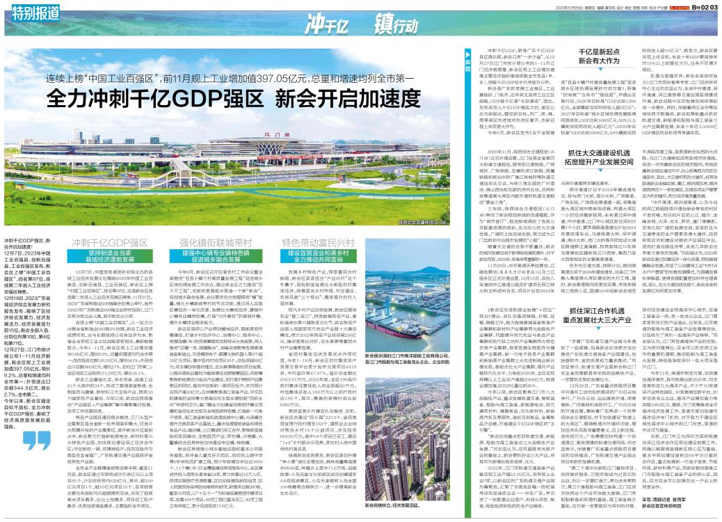 冲刺千亿GDP强区,新会开启加速度! 12月7日,2023年中国工业百强县、创新百强县、工业百强区发布,新会区上榜“中国工业百强区”,排名第97位,连续第二年进入工业经济百强区榜单。 12月1