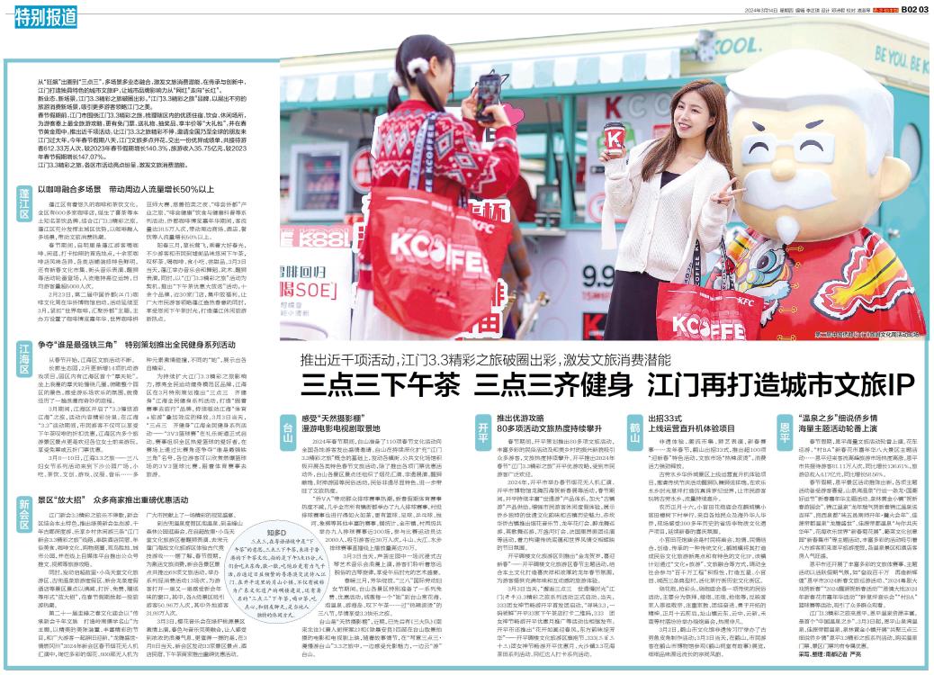 从“狂飙”出圈到“三点三”,多场景多业态融合,激发文旅消费潜能,在传承与创新中,江门打造独具特色的城市文旅IP,让城市品牌影响力从“网红”走向“长红”。 新业态、新场景,江门3.3精彩之旅破圈出
