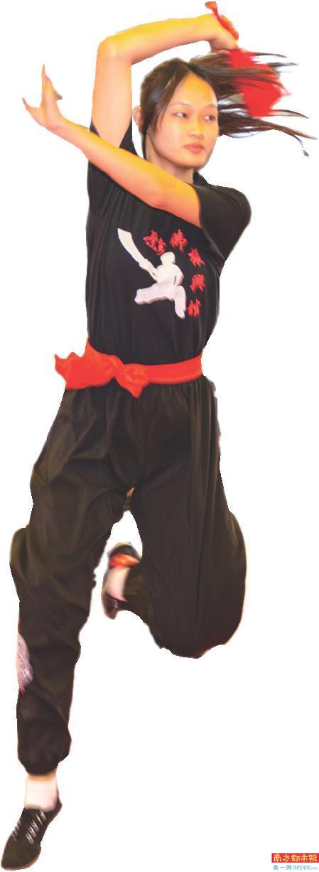 黄冲小学的学生们展示武术套路。