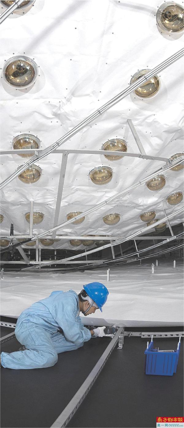 11月20日,随着最后一个光电倍增管被固定,江门中微子实验探测器主体建成。直径达35.4米的有机玻璃球是江门中微子实验的探测器主体,其体量是此前世界最大同类装置的10倍。