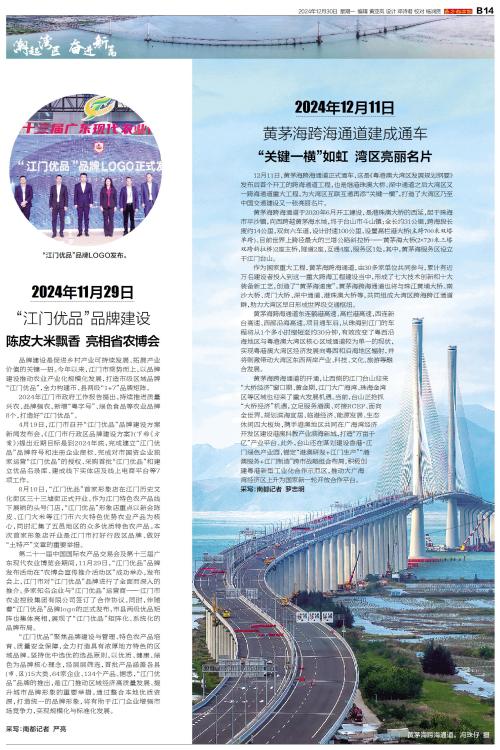 2024年11月29日 品牌建设是促进乡村产业可持续发展、拓展产业价值的关键一招。今年以来,江门市乘势而上,以品牌建设推动农业产业化规模化发展,打造市级区域品牌“江门优品”,全力构建市、县两级“