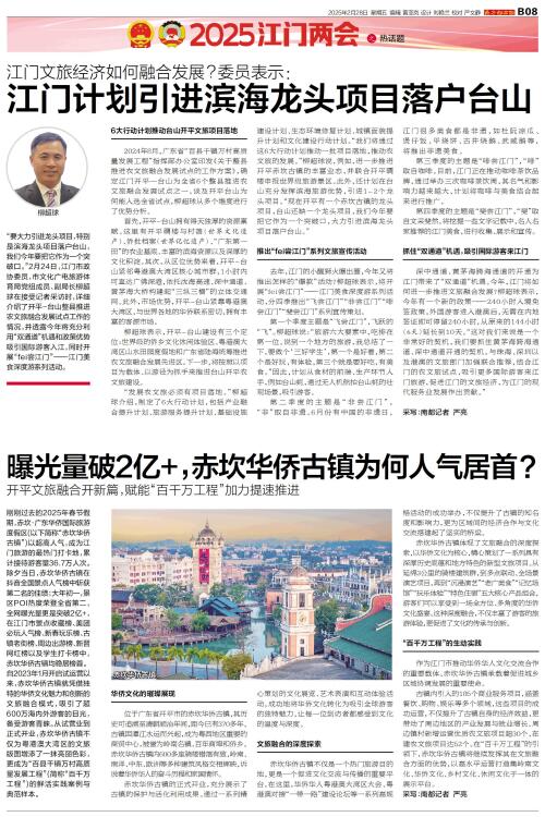 2025江门两会之热话题 “要大力引进龙头项目,特别是滨海龙头项目落户台山,我们今年要把它作为一个突破口。”2月24日,江门市政协委员,市文化广电旅游体育局党组成员、副局长柳超球在接受记者采访时