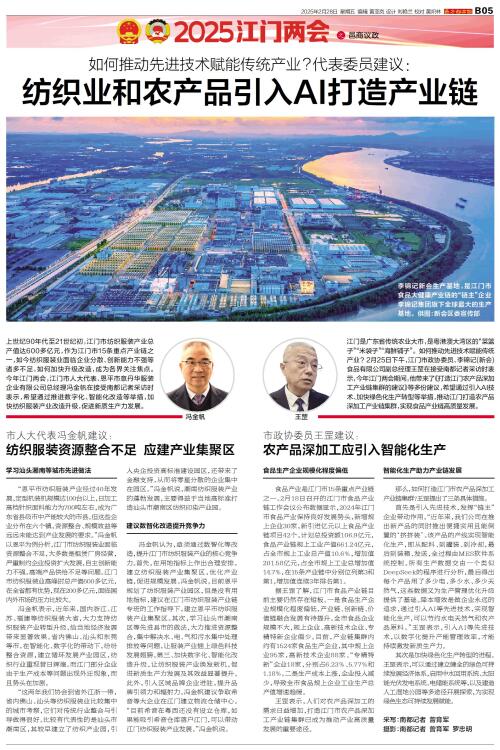 2025江门两会之邑商议政 市人大代表冯金帆建议:纺织服装资源整合不足 应建产业集聚区 上世纪90年代至21世纪初,江门市纺织服装产业总产值达600多亿元,作为江门市15条重点产业链之一,如今