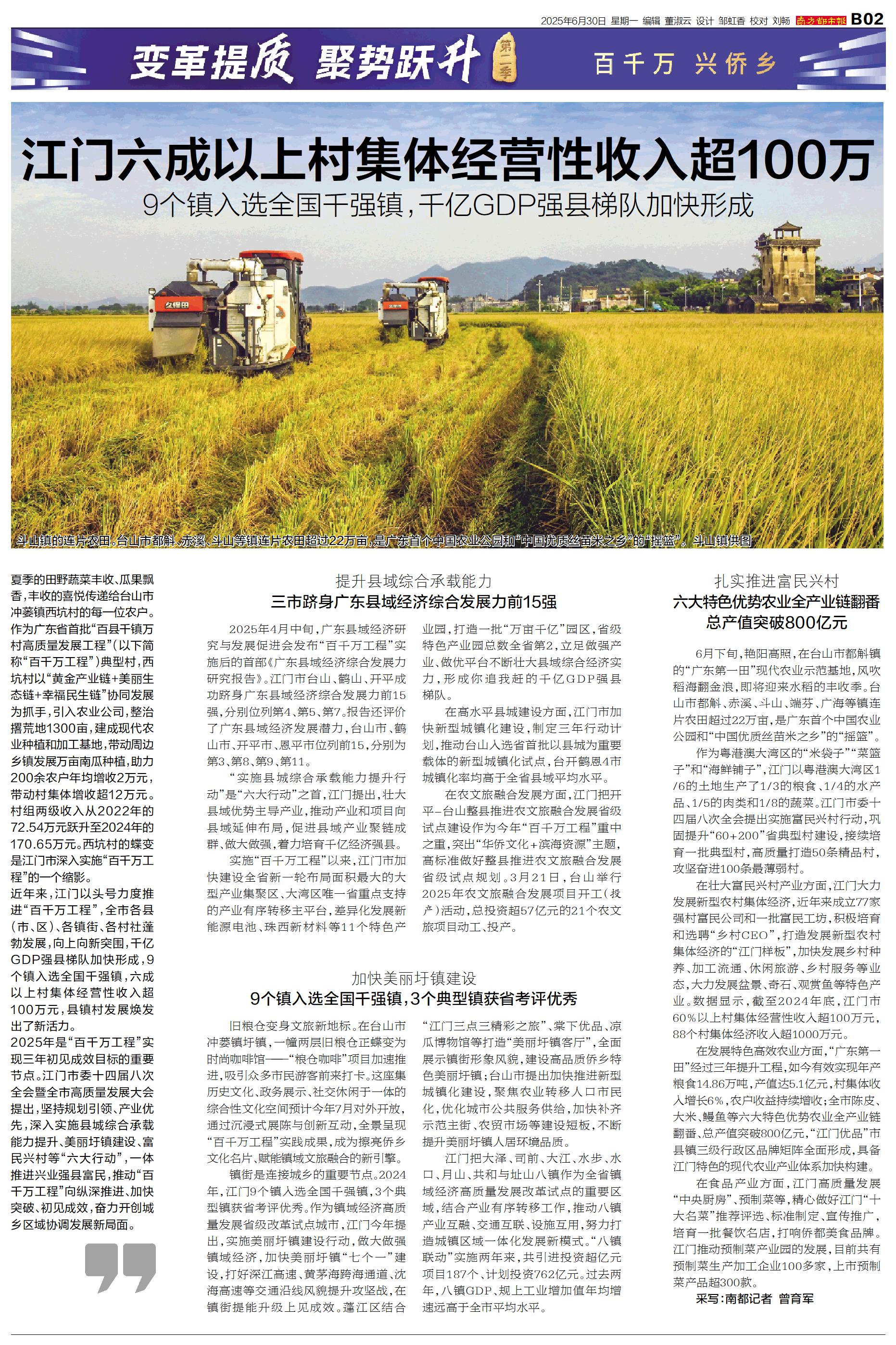 夏季的田野蔬菜丰收、瓜果飘香,丰收的喜悦传递给台山市冲蒌镇西坑村的每一位农户。作为广东省首批“百县千镇万村高质量发展工程”(以下简称“百千万工程”)典型村,西坑村以“黄金产业链+美丽生态链+幸福民