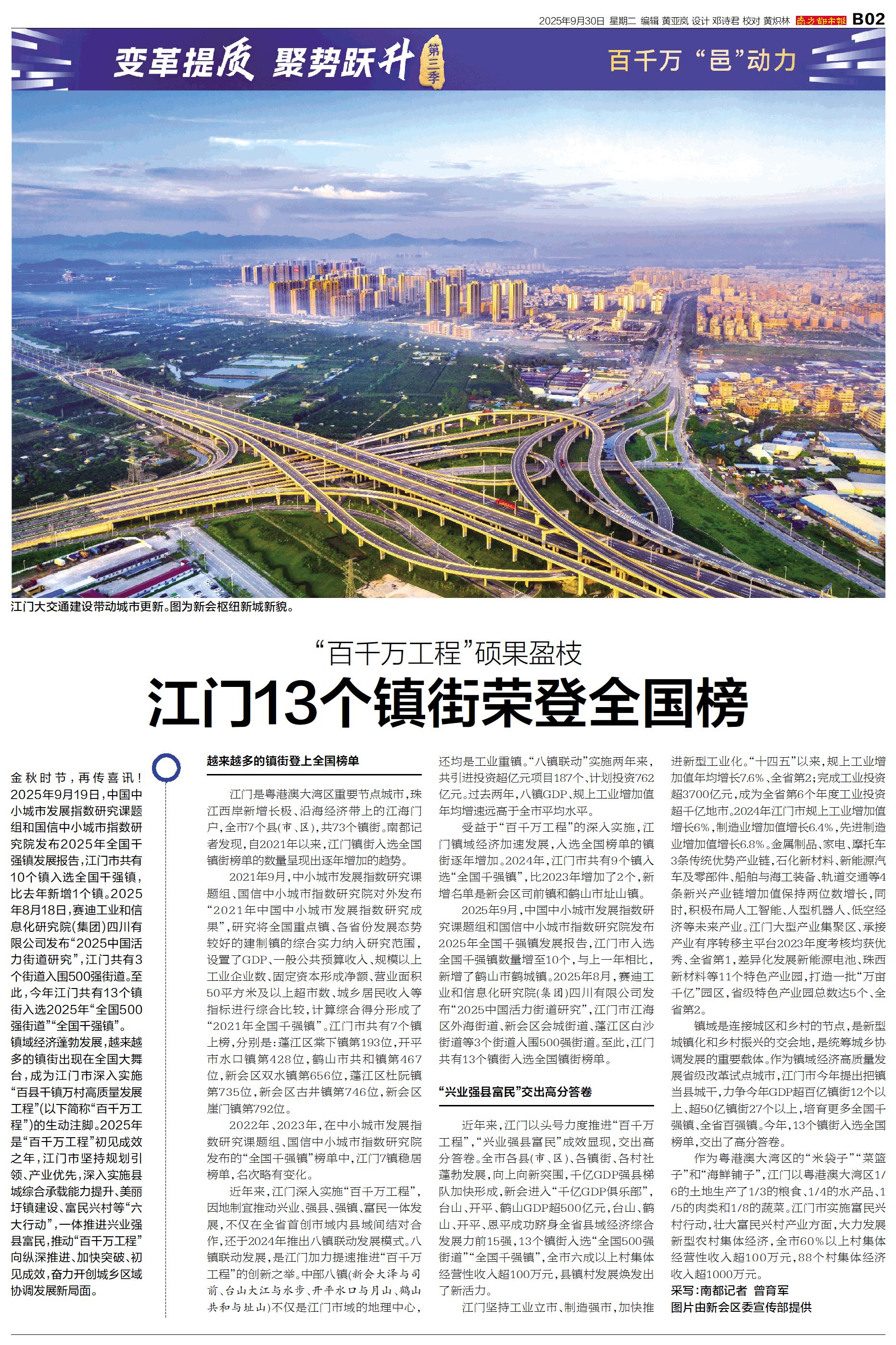金秋时节,再传喜讯!2025年9月19日,中国中小城市发展指数研究课题组和国信中小城市指数研究院发布2025年全国千强镇发展报告,江门市共有10个镇入选全国千强镇,比去年新增1个镇。2025年8月