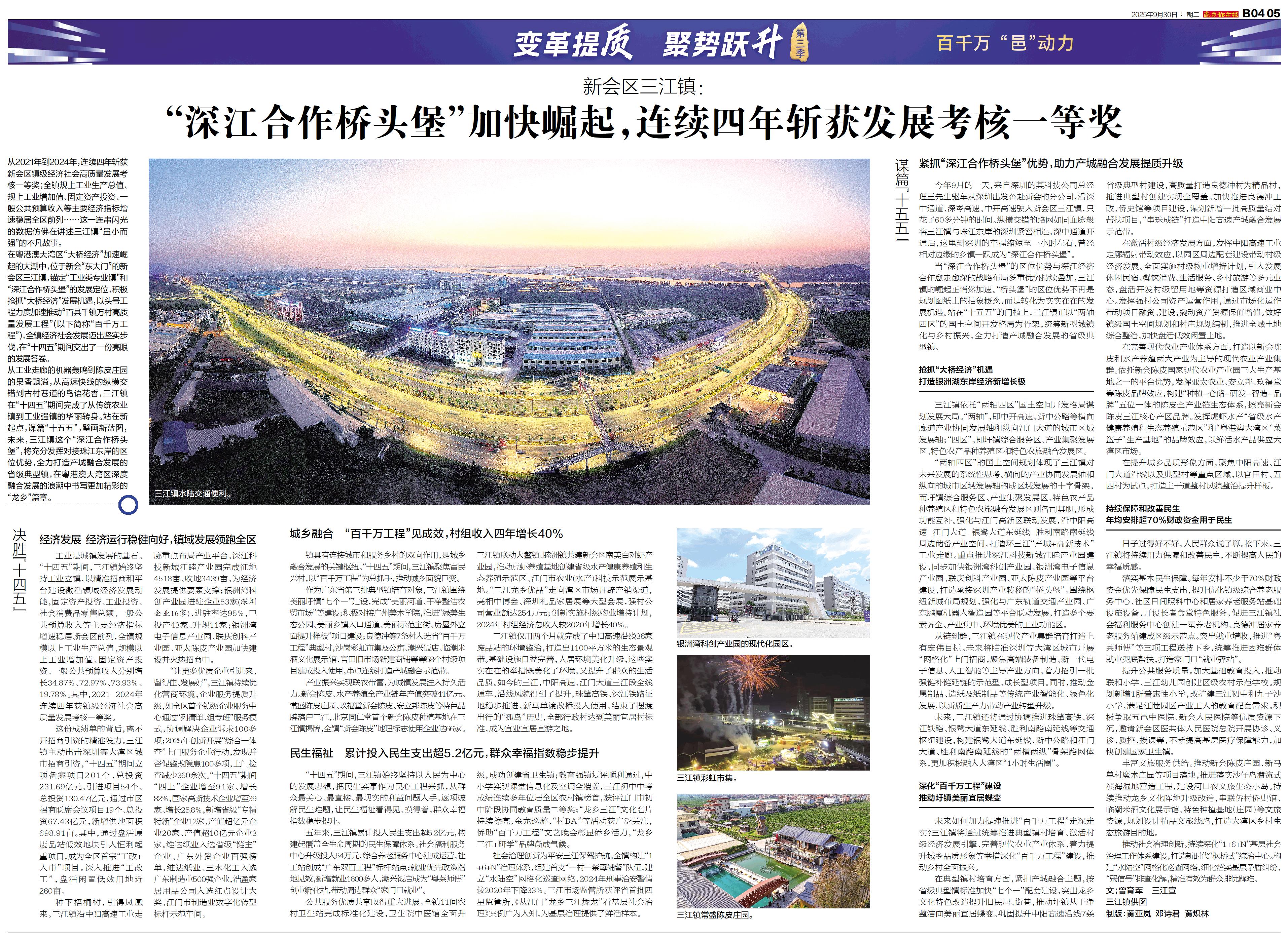从2021年到2024年,连续四年斩获新会区镇级经济社会高质量发展考核一等奖;全镇规上工业生产总值、规上工业增加值、固定资产投资、一般公共预算收入等主要经济指标增速稳居全区前列……这一连串闪光的数