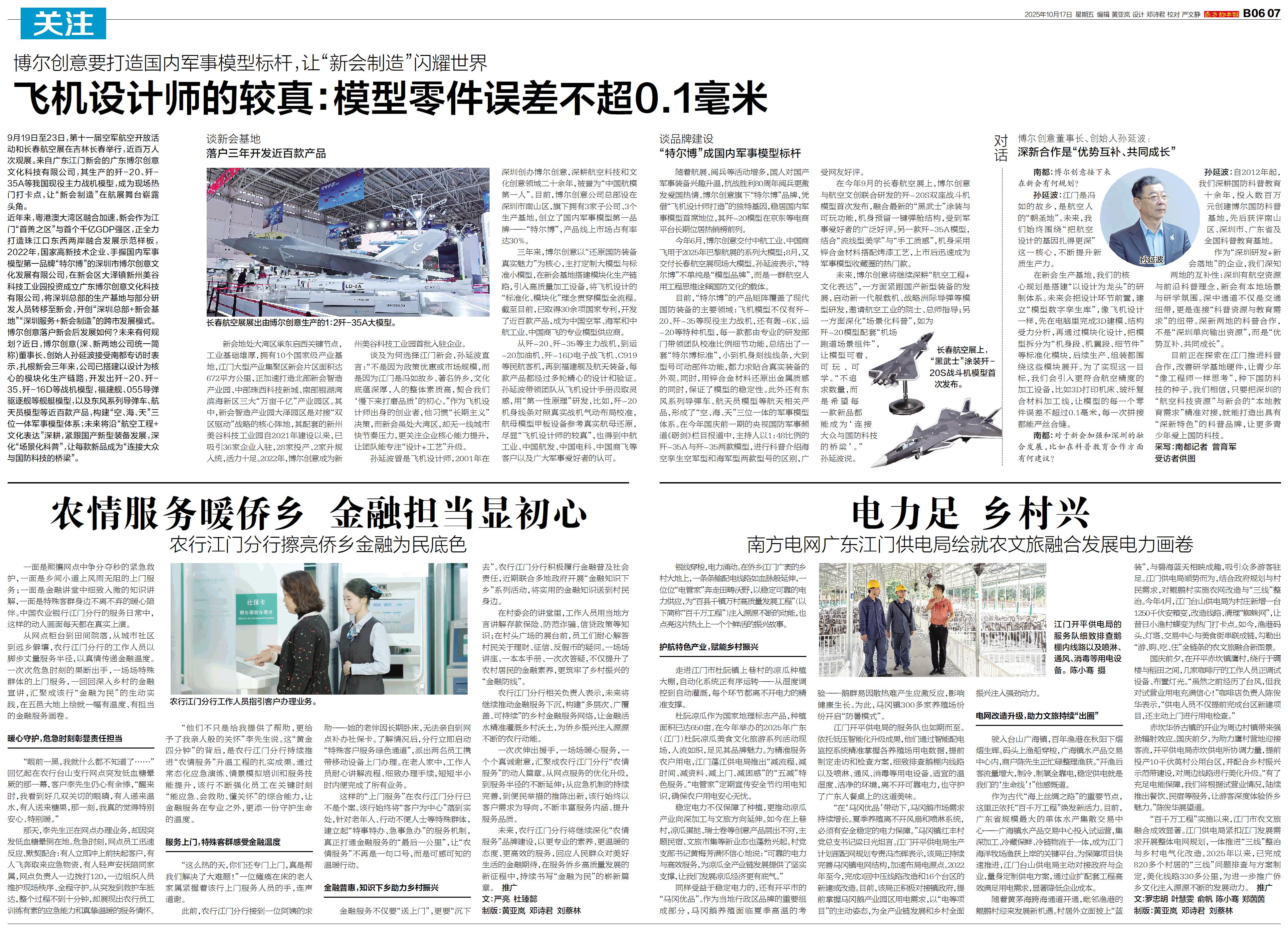 9月19日至23日,第十一届空军航空开放活动和长春航空展在吉林长春举行,近百万人次观展。来自广东江门新会的广东博尔创意文化科技有限公司,其生产的歼-20、歼-35A等我国现役主力战机模型,成为现场