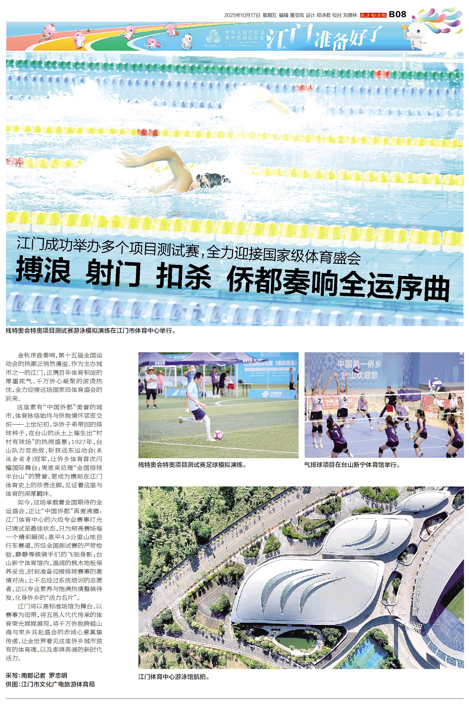 金秋序曲奏响,第十五届全国运动会的热潮正悄然漫溢。作为主办城市之一的江门,正携百年体育积淀的厚重底气、千万侨心凝聚的滚烫热忱,全力迎接这场国家级体育盛会的到来。 这座素有“中国侨都”美誉的城市,
