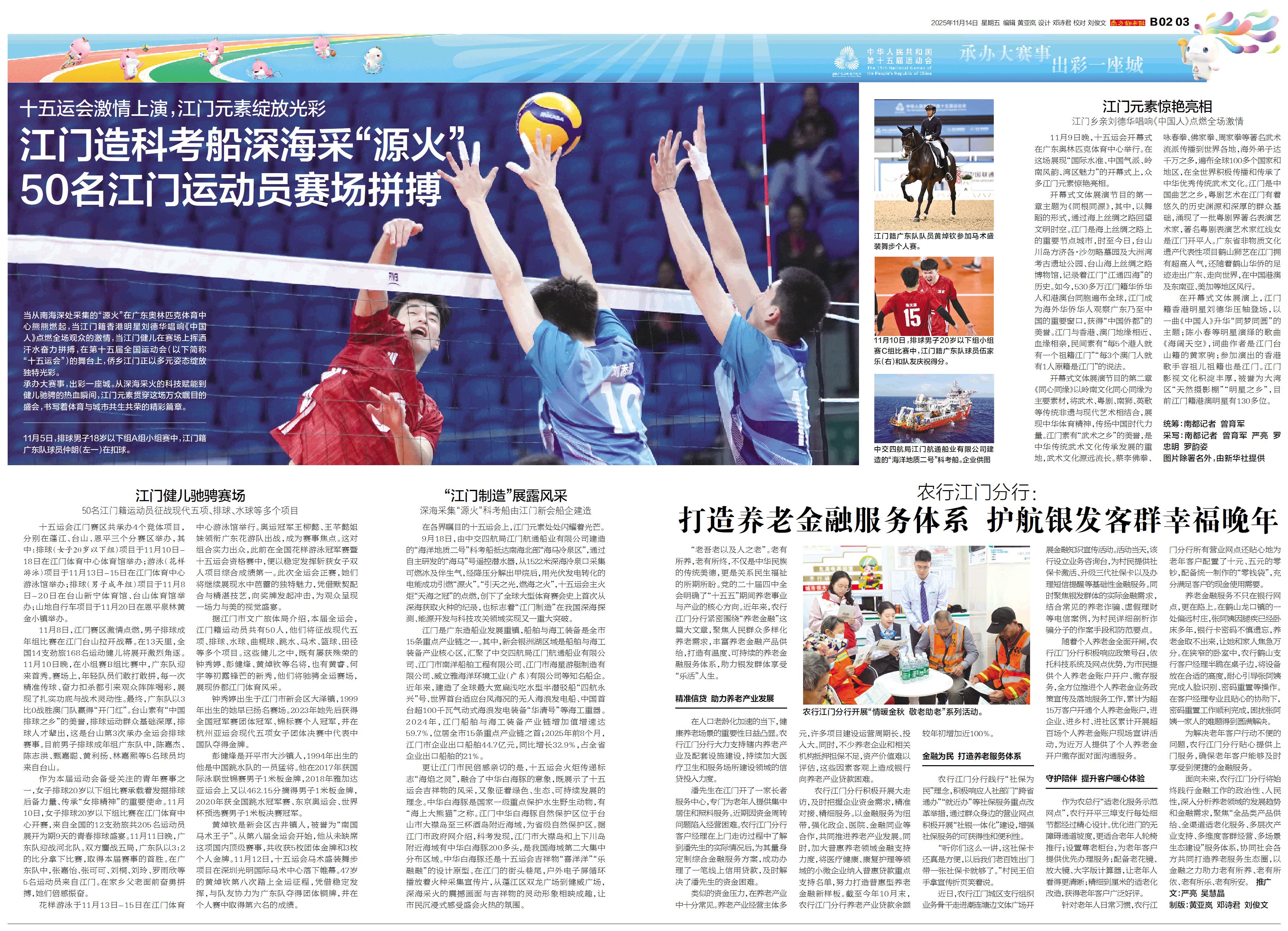 “老吾老以及人之老”。老有所养,老有所终,不仅是中华民族的传统美德,更是关系民生福祉的所期所盼。党的二十届四中全会明确了“十五五”期间养老事业与产业的核心方向。近年来,农行江门分行紧密围绕“养老金