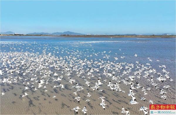 银湖湾候鸟群。 通讯员 李健庭 摄