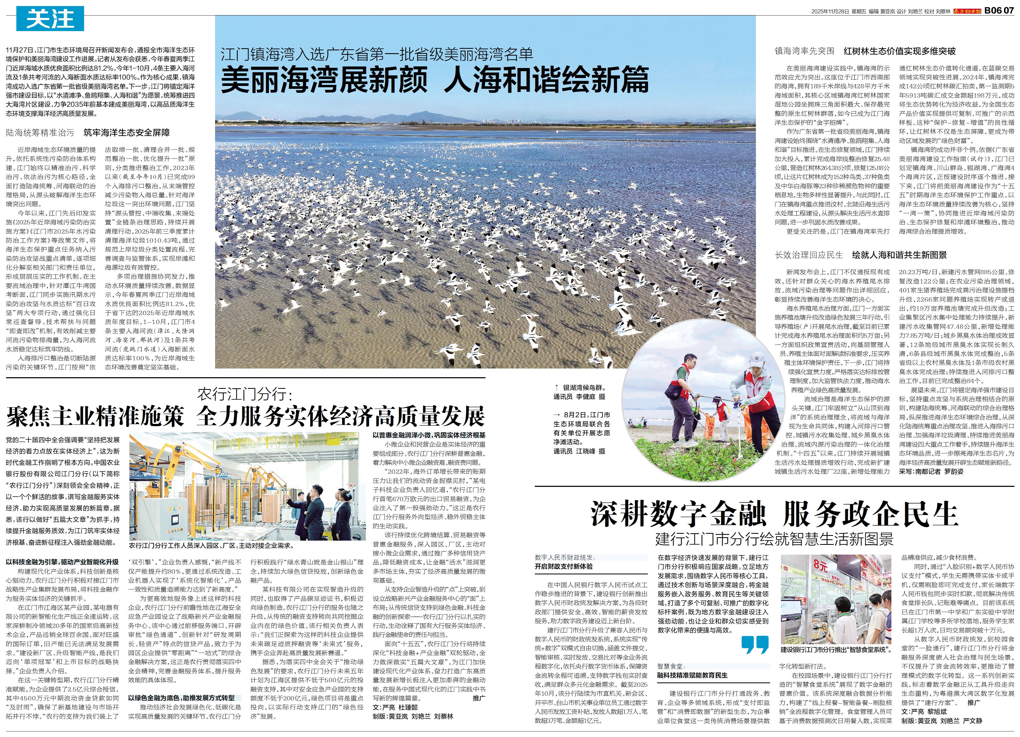党的二十届四中全会强调要“坚持把发展经济的着力点放在实体经济上”,这为新时代金融工作指明了根本方向。中国农业银行股份有限公司江门分行(以下简称“农行江门分行”)深刻领会全会精神,正以一个个鲜活的故
