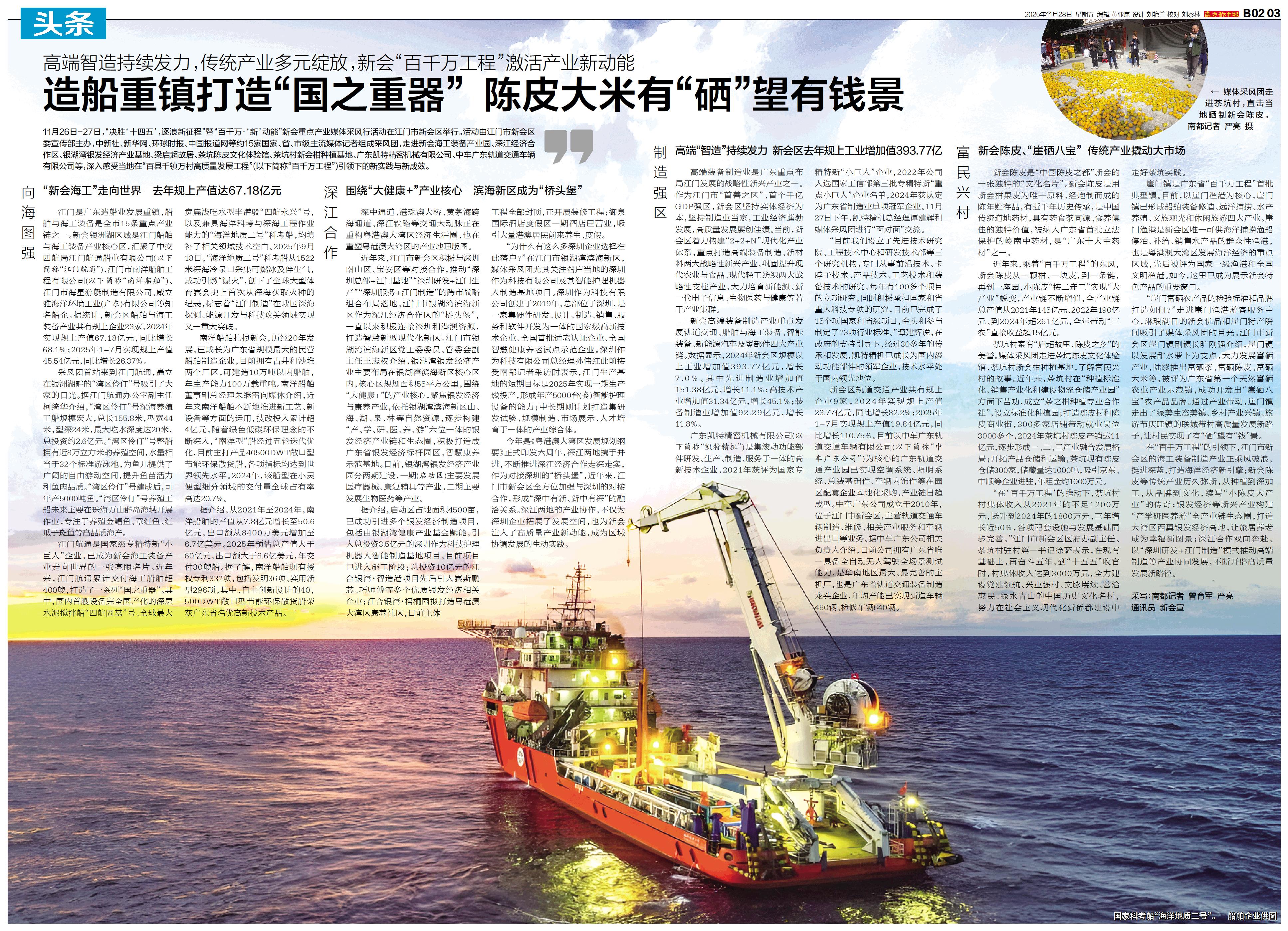 11月26日-27日,“决胜‘十四五’,逐浪新征程”暨“百千万·‘新’动能”新会重点产业媒体采风行活动在江门市新会区举行。活动由江门市新会区委宣传部主办,中新社、新华网、环球时报、中国报道网等约1