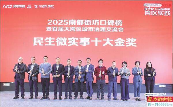 今年9月底,2025南都街坊口碑榜暨首届大湾区城市治理交流会启动优秀民生实事案例征集,累计征集到超200件民生实事,覆盖交通、住建、城市管理、市场监管、政务服务、医疗健康等领域,经网络投票和专家评审,最终评选出2025优秀民生实事,包括民生实事年度致敬案例、民生实事十大金奖、民生微实事十大金奖、惠民善治传播十大示范案例、惠民善治传播十大创新案例、湾区融通十大示范案例、AI治理应用十大示范案例、国企十大优秀案例,以及民生实事/微实事优秀案例等。