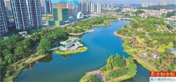 江门园山湖公园景色宜人、绿意盎然,彰显城市绿色宜居底色。