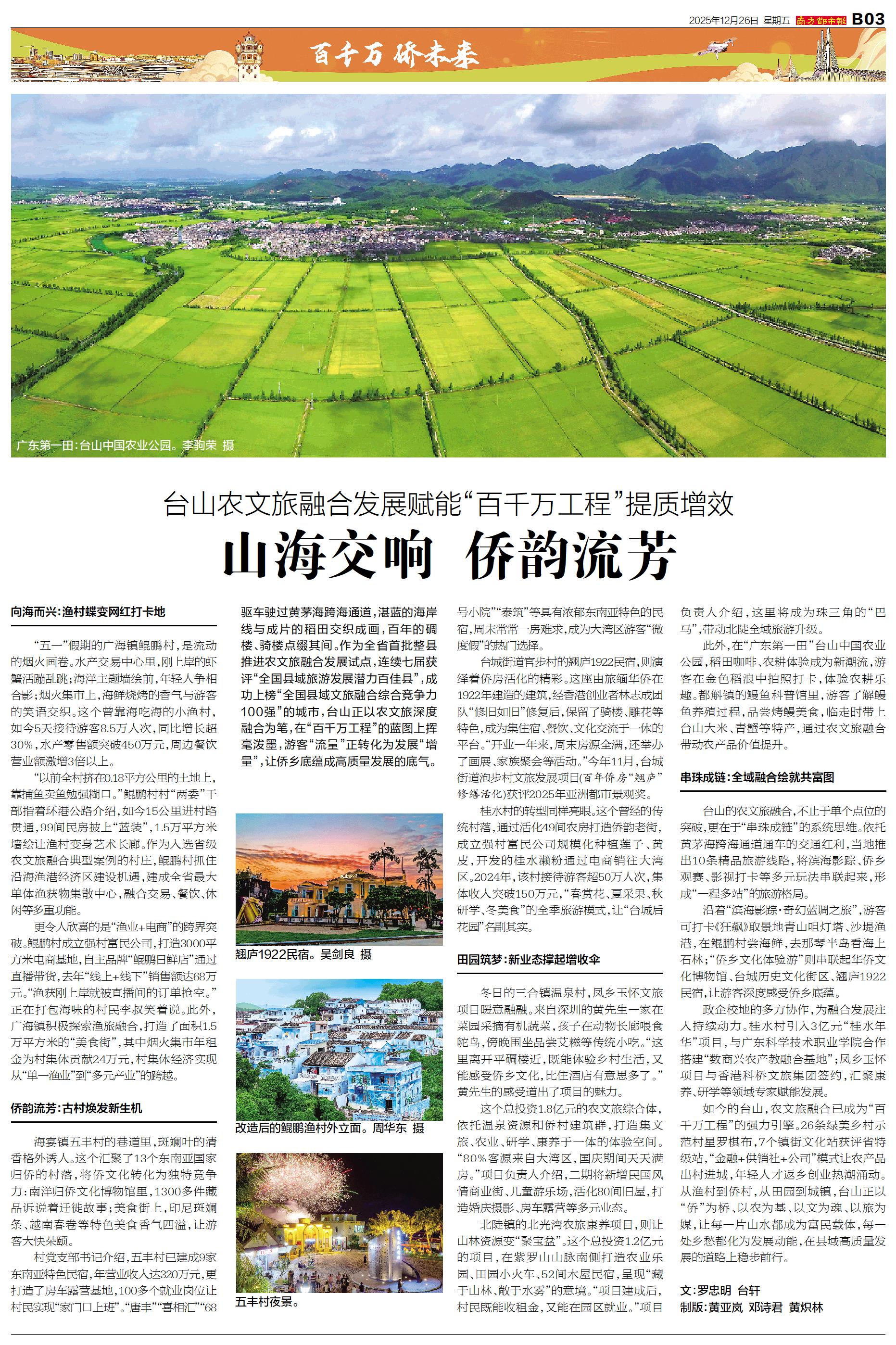 驱车驶过黄茅海跨海通道,湛蓝的海岸线与成片的稻田交织成画,百年的碉楼、骑楼点缀其间。作为全省首批整县推进农文旅融合发展试点,连续七届获评“全国县域旅游发展潜力百佳县”,成功上榜“全国县域文旅融合综