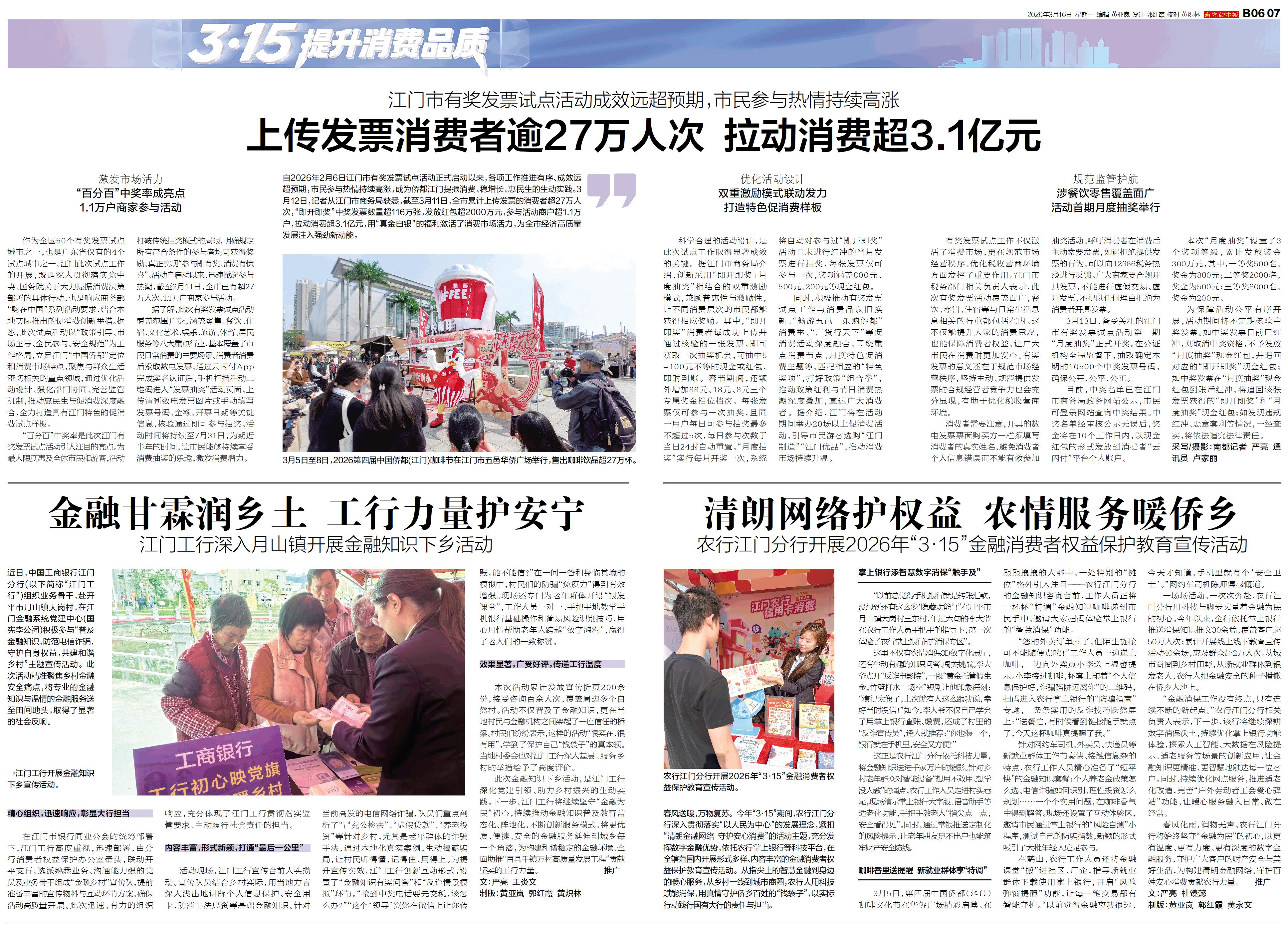 自2026年2月6日江门市有奖发票试点活动正式启动以来,各项工作推进有序、成效远超预期,市民参与热情持续高涨,成为侨都江门提振消费、稳增长、惠民生的生动实践。3月12日,记者从江门市商务局获悉,截
