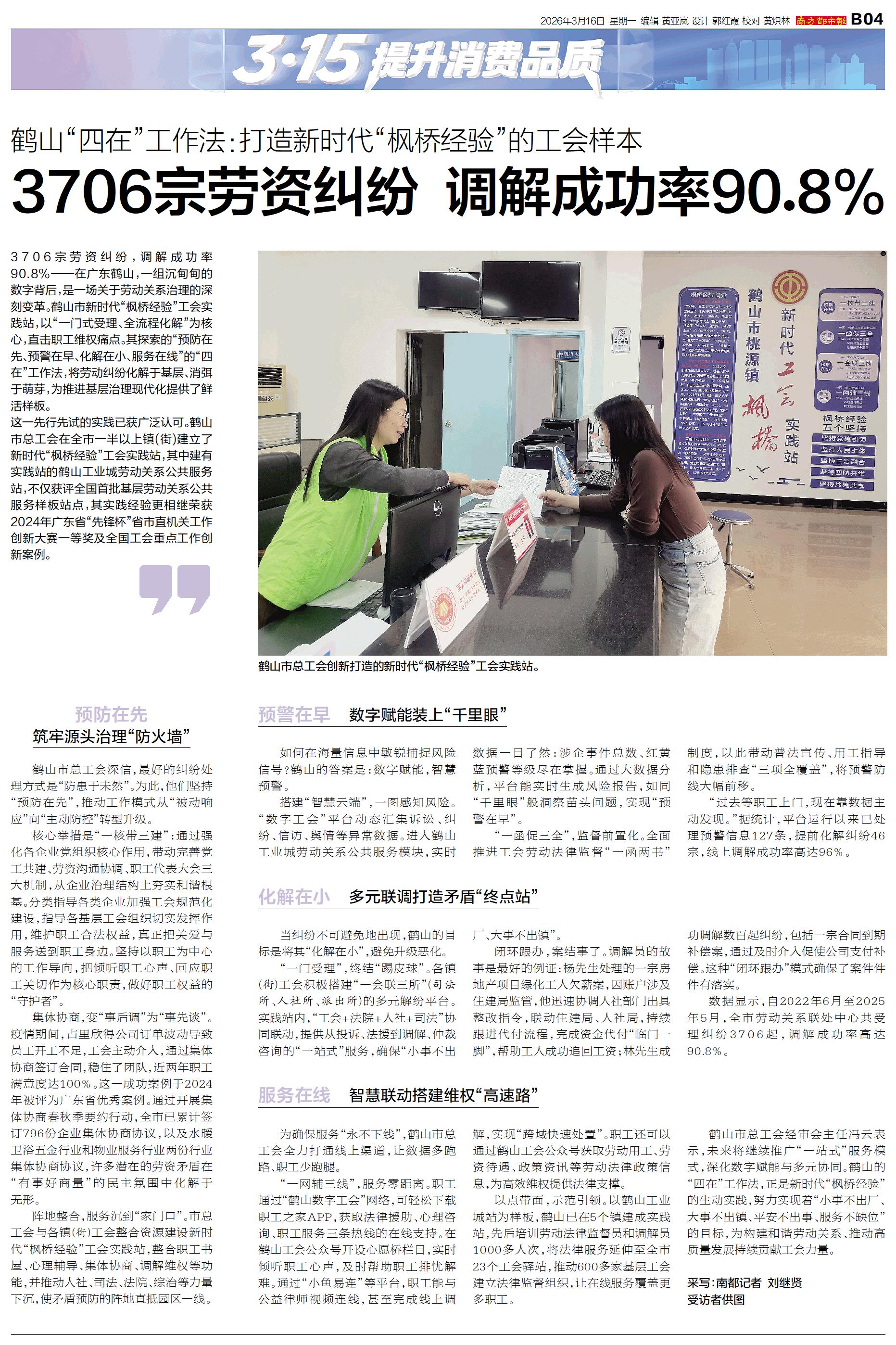 鹤山“四在”工作法:打造新时代“枫桥经验”的工会样本