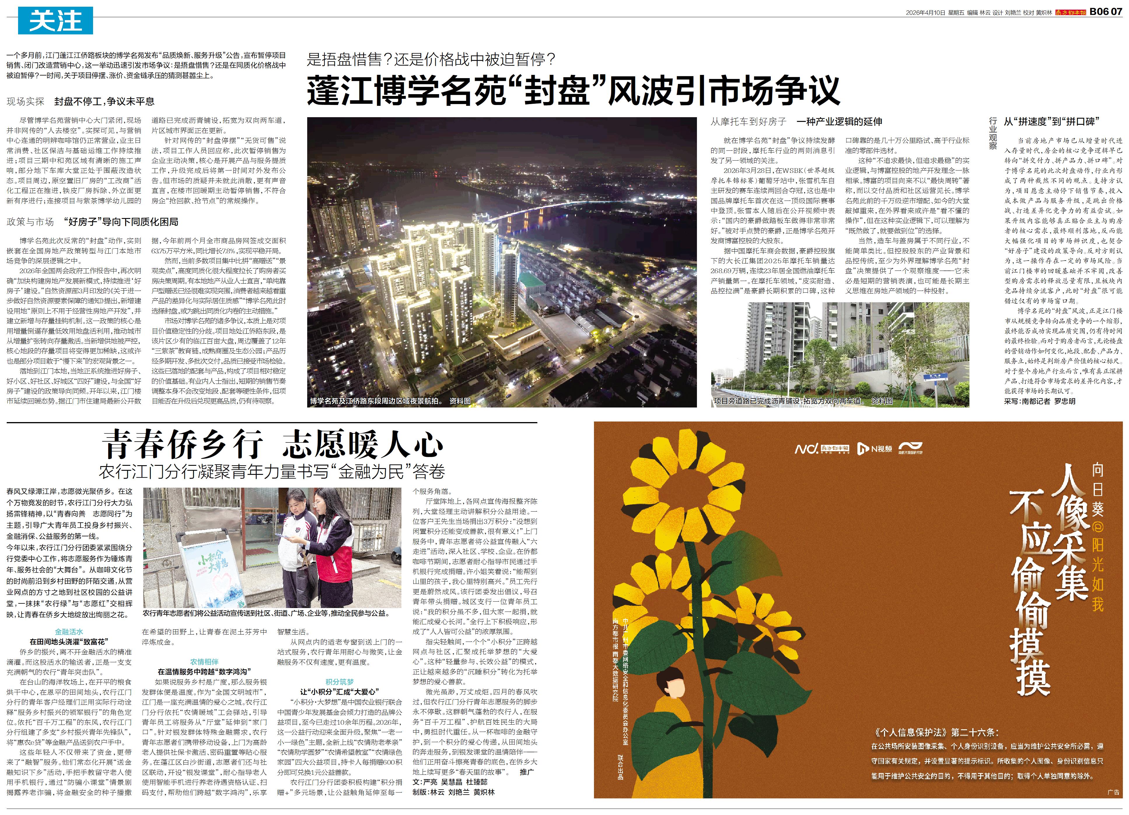 春风又绿潭江岸,志愿微光聚侨乡。在这个万物竞发的时节,农行江门分行大力弘扬雷锋精神,以“青春向善 志愿同行”为主题,引导广大青年员工投身乡村振兴、金融消保、公益服务的第一线。 今年以来,农行江门