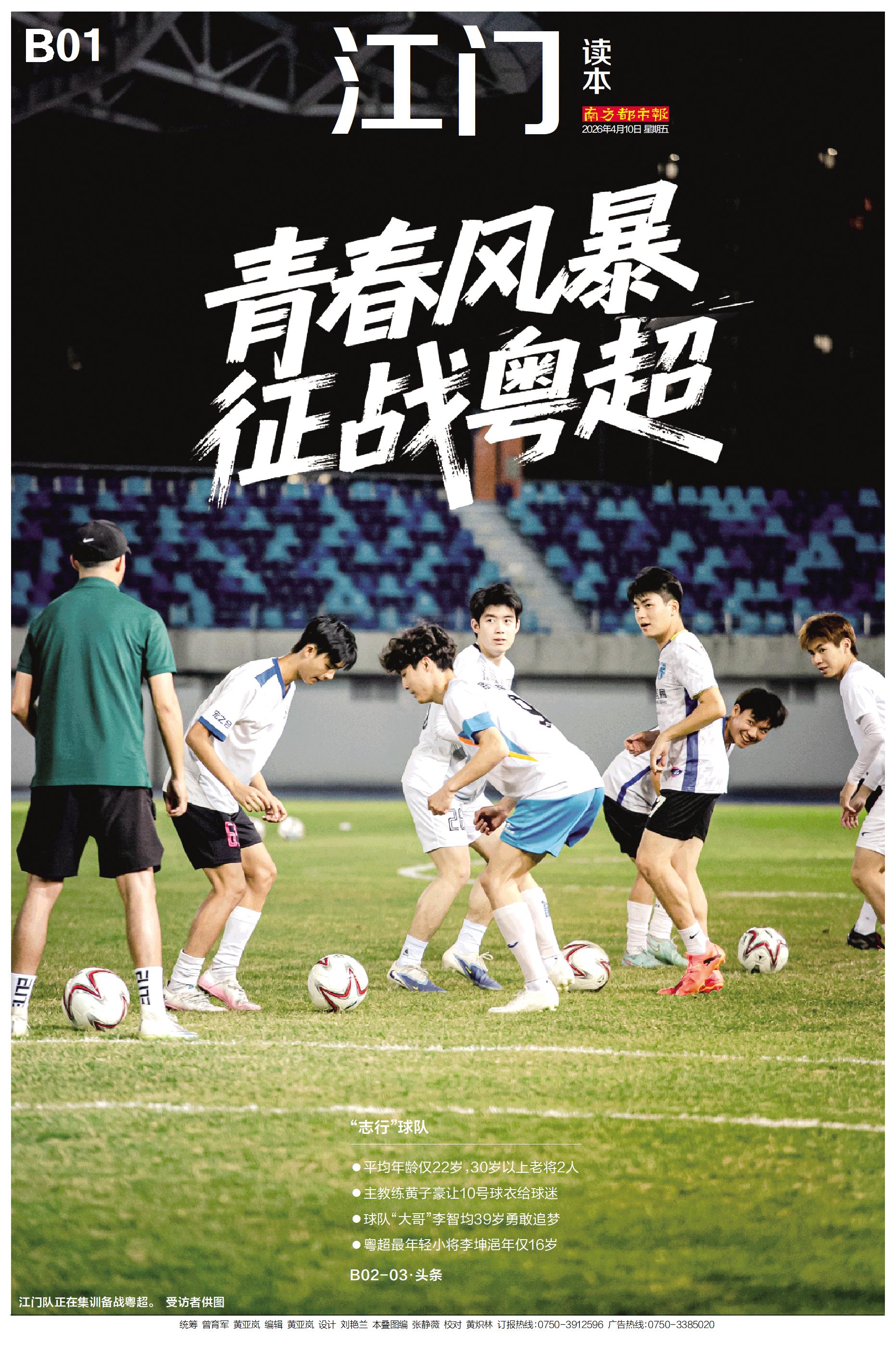 “志行”球队平均年龄仅22岁,30岁以上老将2人主教练黄子豪让10号球衣给球迷球队“大哥”李智均39岁勇敢追梦粤超最年轻小将李坤浥年仅16岁 B02-03·头条