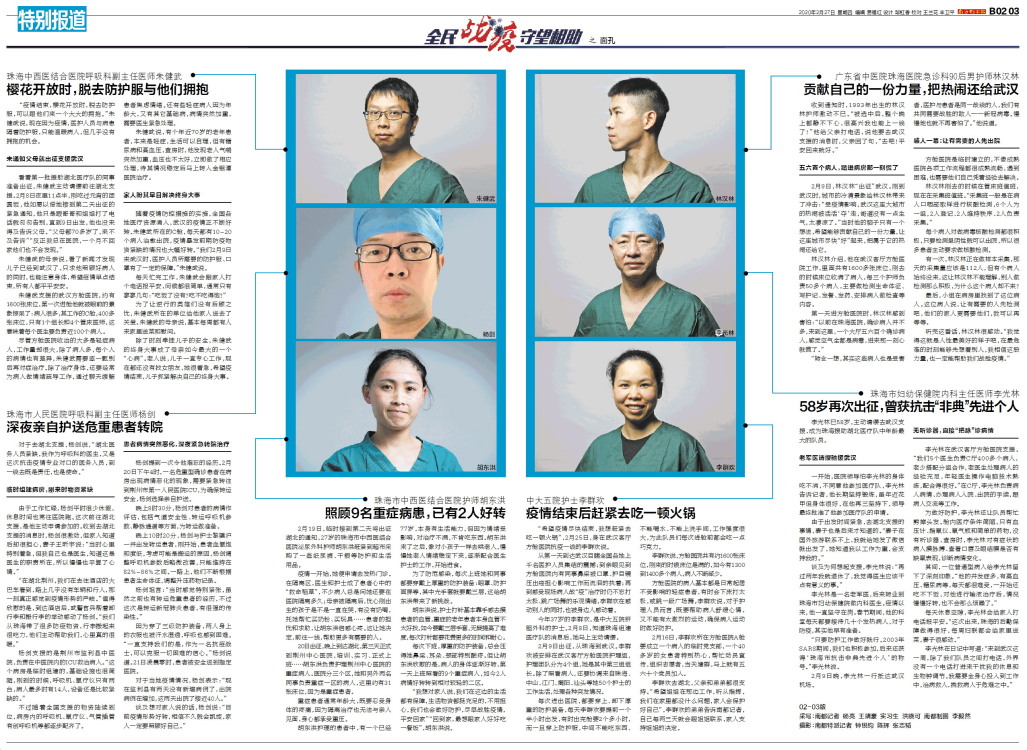 2月19日,临时接到第二天将出征湖北的通知,27岁的珠海市中西医结合医院泌尿外科护师胡东洪赶紧到超市采购了一些纸尿裤、干粮等防护和生活用品。疫情一开始,她便申请去发热门诊。在隔离区,医生和护士成了患者