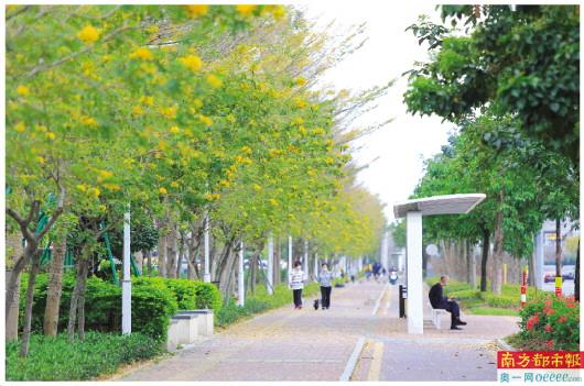 2019年以来,西堤路南延段、河坊路、河景路、醒狮路等12条道路绿化提升工程连缀成片,为斗门城区增美添绿。记者从斗门区市政园林管理局了解到,仅在2019年,斗门区新增乔灌木23.94万棵,新增、改造绿地面积合计约63.18万平方米,四季时花的种植更换与养护及时,栽植更换共计42.3万株,城市空间大量添绿。