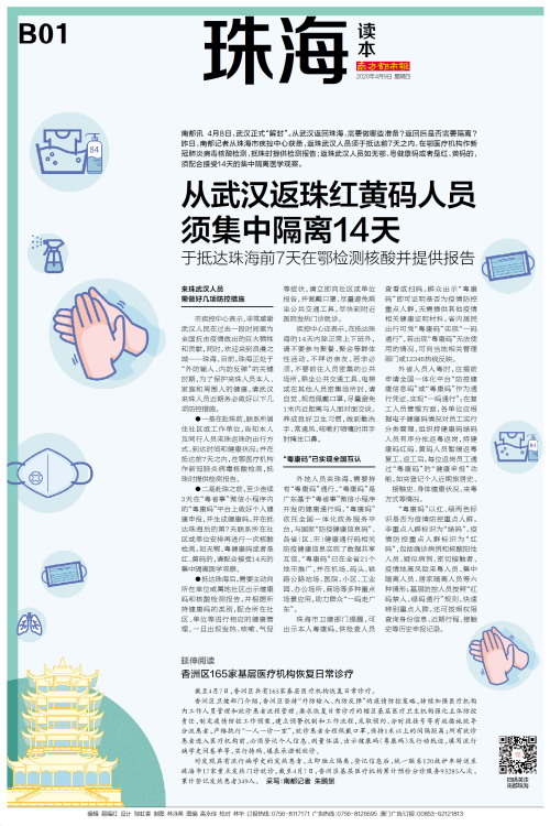 从武汉返珠红黄码人员须集中隔离14天