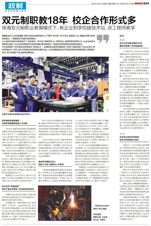 双元制职教18年 校企合作形式多
