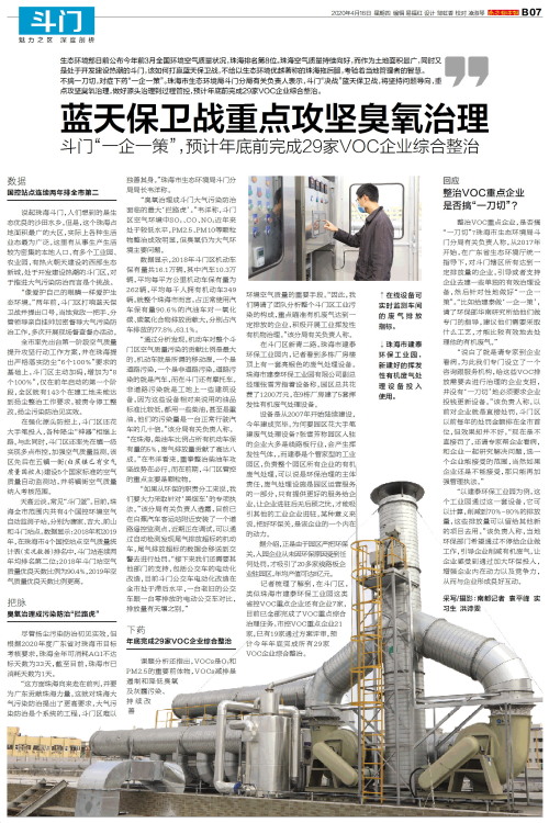 生态环境部日前公布今年前3月全国环境空气质量状况,珠海排名第8位。珠海空气质量持续向好,而作为土地面积最广,同时又是处于开发建设热潮的斗门,该如何打赢蓝天保卫战,不给以生态环境优越著称的珠海拖后腿,考