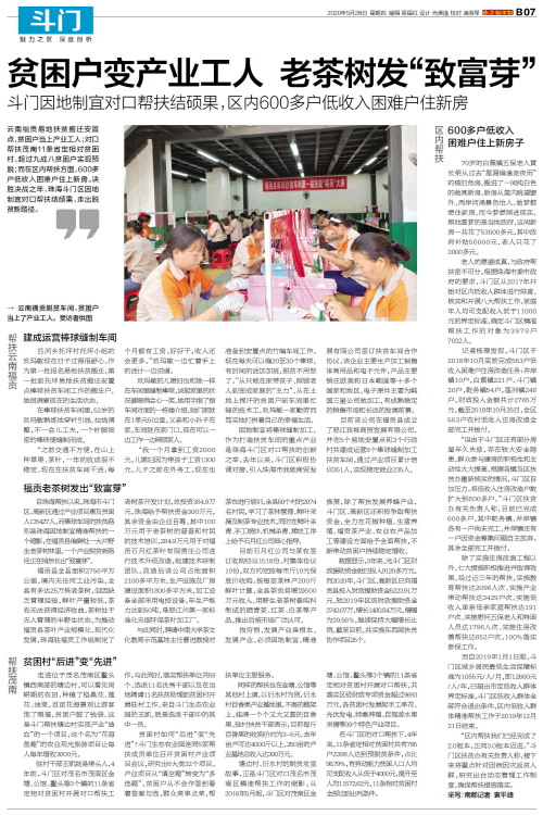 云南福贡易地扶贫搬迁安置点,贫困户当上产业工人;对口帮扶茂南11条省定相对贫困村,超过九成八贫困户实现预脱;而在区内帮扶方面,600多户低收入困难户住上新房。决胜决战之年,珠海斗门区因地制宜对口帮扶结