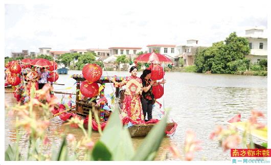 南澳村河涌,国家级非遗斗门水上婚嫁上演。 南都记者 吴进 摄