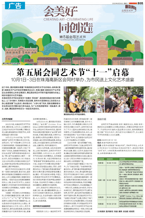 这个中秋、国庆假期去哪里?珠海高新区会同艺术节与你相会。由珠海(国家)高新技术产业开发区管理委员会主办,珠海(国家)高新技术产业开发区社会保障和公共事业局承办,第五届会同艺术节将于国庆假期为你送上精彩