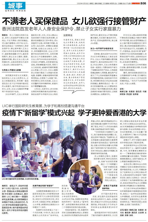 南都讯 疫情之下,该如何去留学?10月21至29日,北京师范大学-香港浸会大学联合国际学院(中文简称:北师港浸大,英文简称:UIC)举行第十一届国际研究生教育展。此次教育展首次采用线下和线上结合的方式,为UIC学子和高校搭建沟通平台。因疫情影响,境外留学面临多重阻力,但不少学生依然渴求国际化教育。