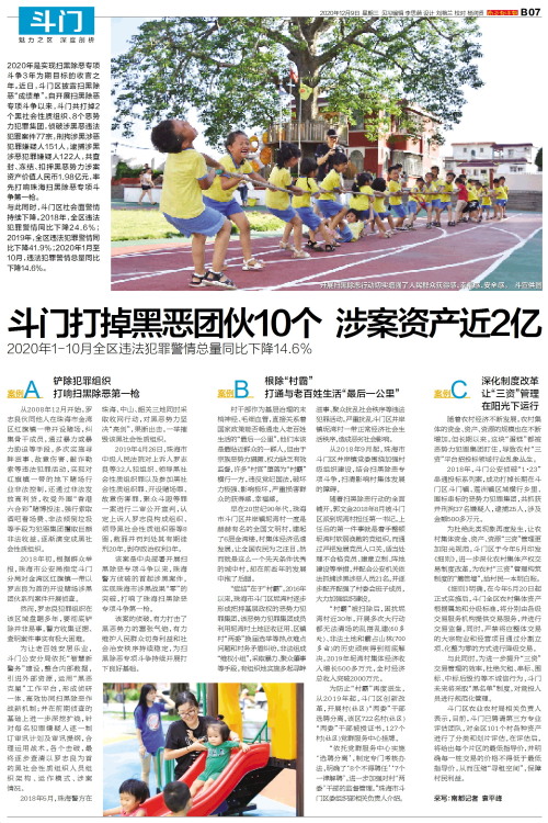 2020年是实现扫黑除恶专项斗争3年为期目标的收官之年。近日,斗门区披露扫黑除恶“成绩单”。自开展扫黑除恶专项斗争以来,斗门共打掉2个黑社会性质组织、8个恶势力犯罪集团,侦破涉黑恶违法犯罪案件77宗,