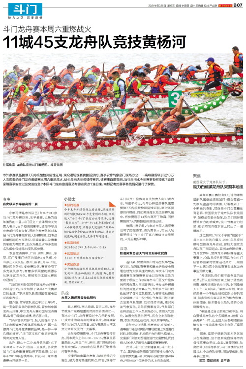 市外参赛队伍提供7天内核酸检测阴性证明、观众进场观赛要提前预约、赛事安排气象部门现场办公……高峰期曾吸引过10万人次观看的斗门龙舟邀请赛本周六重燃战火,这也是自去年疫情停赛后,该赛事首度亮相。与往