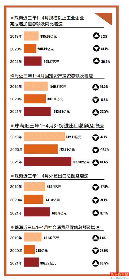 最新出炉的1-4月经济数据,不仅成为珠海在十四五规划开局交出的第一份“成绩单”,也为人们观察珠海“打造粤港澳大湾区经济新引擎”提供了一扇窗口。经济数据释放了哪些信号?珠海在大湾区处于什么位置,距离成为“经济新引擎”还有多远?南都珠中江政经观察室梳理了湾区珠三角城市的数据,尝试寻找答案。