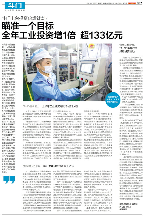 瞄准一个目标 全年工业投资增1倍 超133亿元