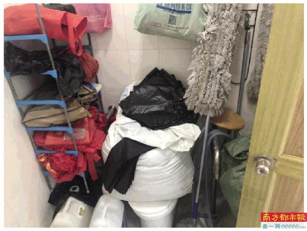 珠海市青少年妇女儿童活动中心的无障碍厕所被清洁工具占据。